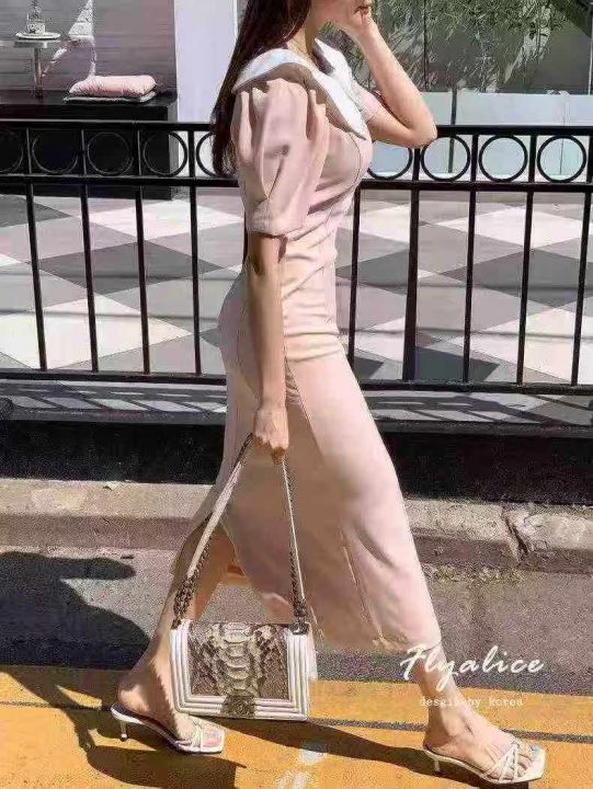 ☕️法式温柔风粉色收腰显瘦短袖连衣裙女夏季新款气质收腰显瘦中长裙210件全清13.8元,码数S到XL,全部带内衬,高品质精品独立包装。