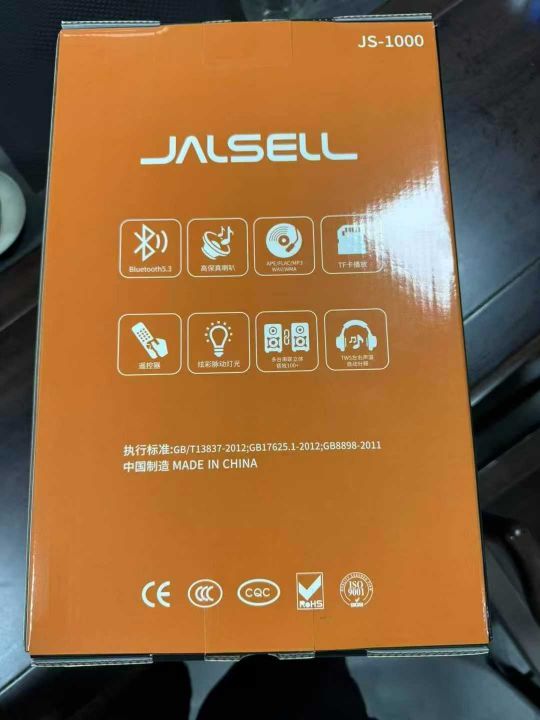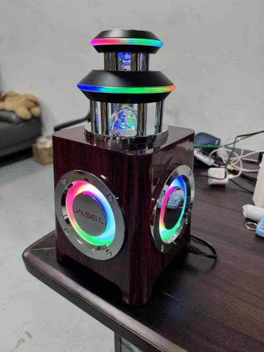 JALSELL JS-1000蓝牙音箱,木纹色,带遥控器,支持TF卡播放和蓝牙5.3连接RGB炫彩灯效,音质清晰,80W大功率,4寸全频扬声器+40mm高音单元,支持APE/FLAC/MP3播放,TWS左右声道自动分,全新未拆封,原装包装完整。