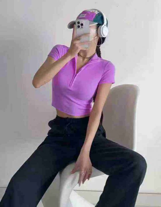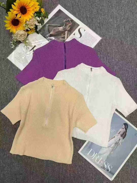 夏季新款酷飒美式辣妹半高领拉链针织短袖T恤,独立包装,均码面料柔软舒适弹力大,196件,全清5.9元超低价秒杀!