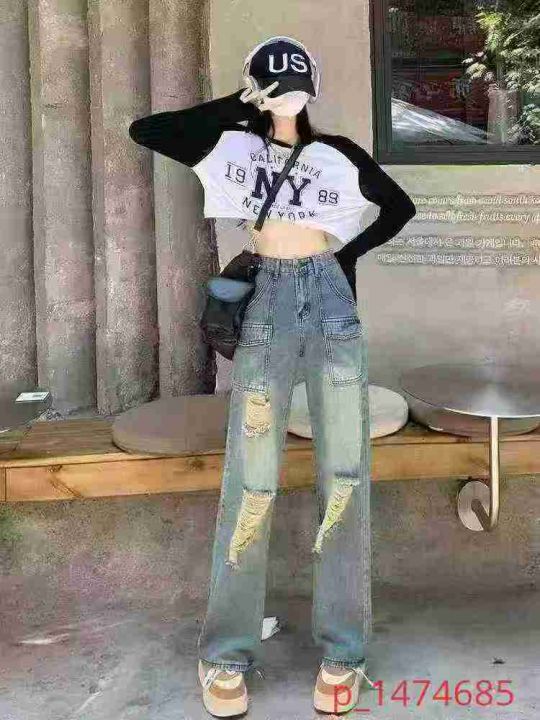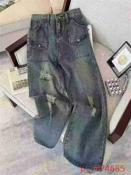 ☕️美式复古做旧破洞阔腿工装牛仔裤男女春秋潮牌设计感宽松直筒裤子 520条全清11.8元,码数S到XXL,独立包装吊牌[庆祝][庆祝][庆祝] _@_@
