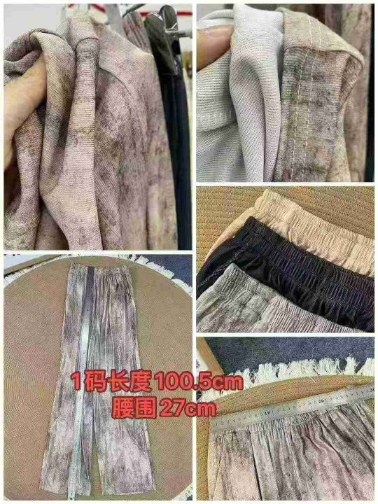 100件高腰阔腿裤,松紧腰,两种面料,柔软,码数0至5码,独立拉链包装,