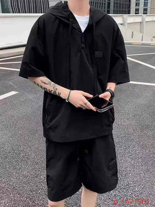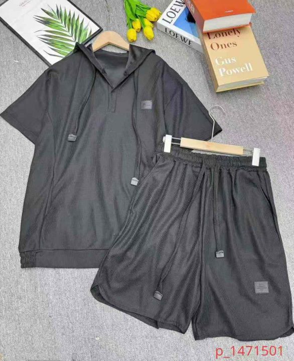 华夫透气舒适面料潮牌男士短袖短裤休闲运动宽松两件套套装,独立包装,单色单款,码数1-6码,数量748件,货号0910#27 _@_@