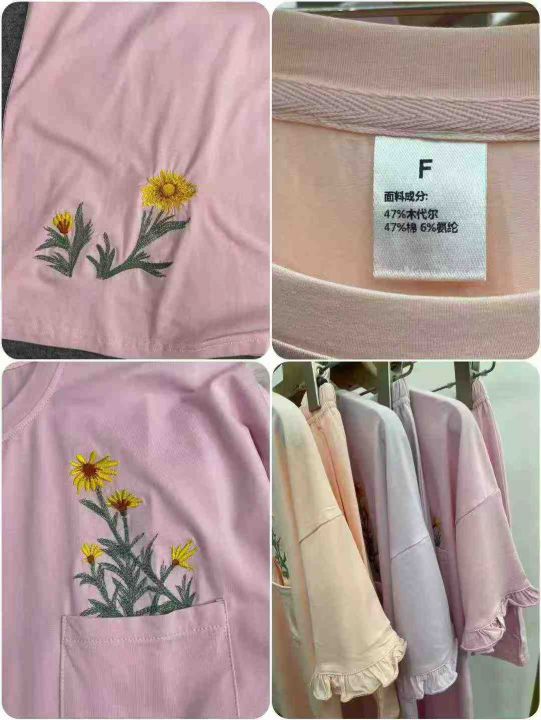 154套木代尔棉刺绣居家休闲套装。面料柔软舒适,后领...
