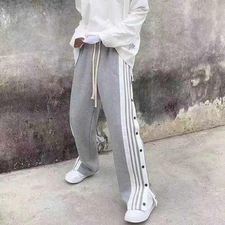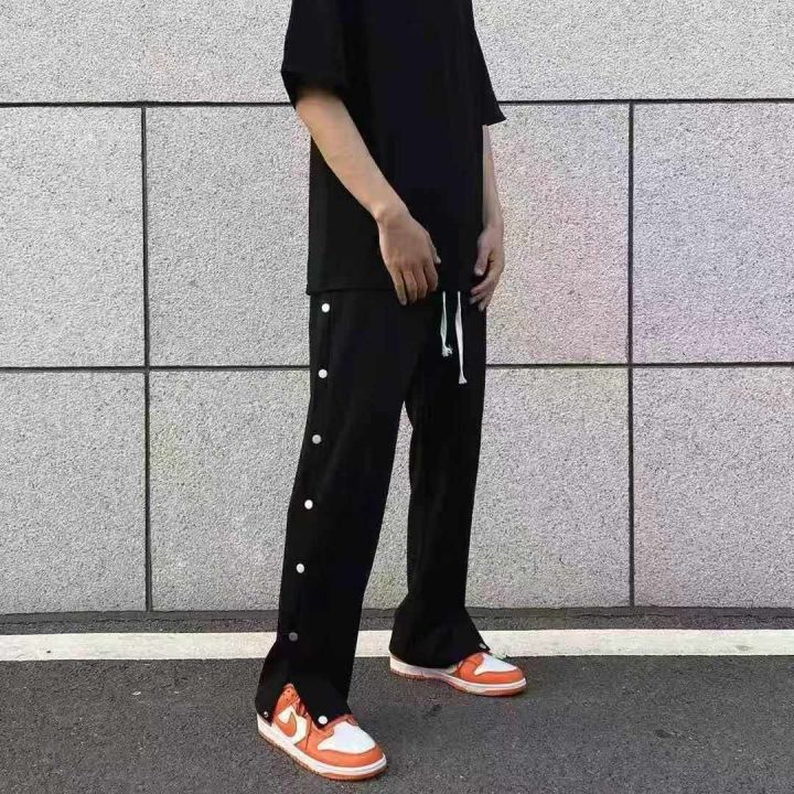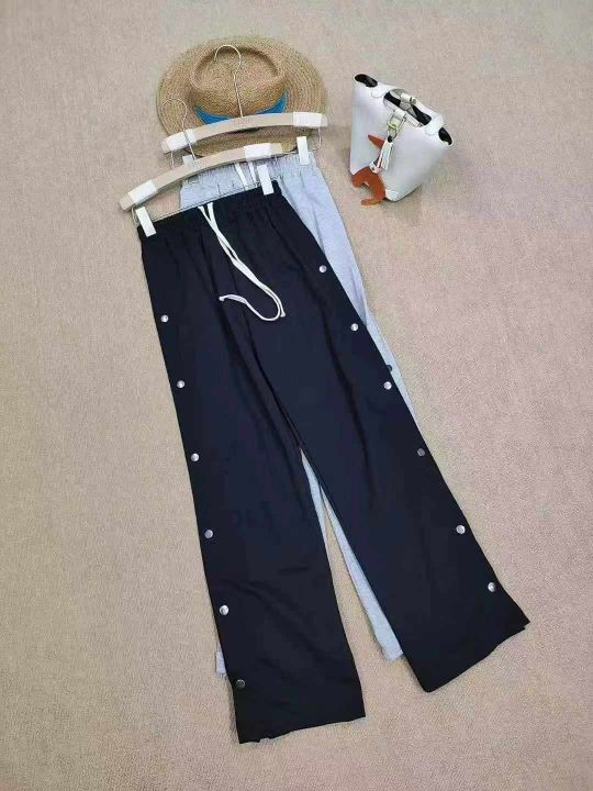 [月亮]:情侣同款排扣设计抽绳棉质休闲裤