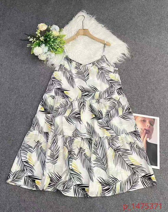 147件欧美大版印花吊带连衣裙,面料舒适,后背蝴蝶结...