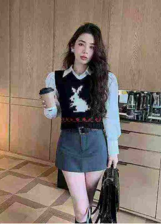 2025春季新款女毛织兔子提花针织马甲背心,品质很好,...