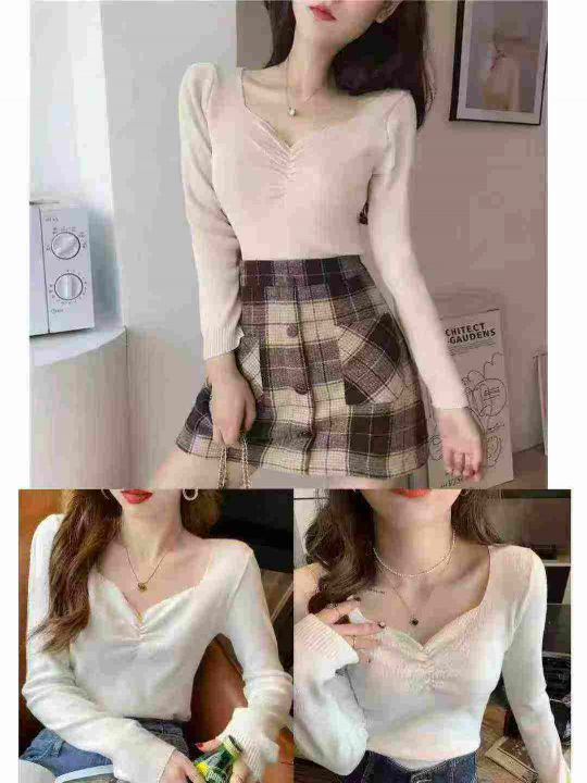 v领针织外穿内搭设计感小众长袖针织,独立包装,六个...