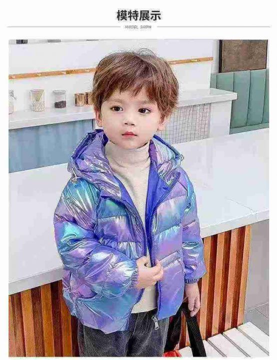1000件男女童装外套荧光渐变亮面炫彩羽绒服,整款多个颜色,独立原包装带吊...
