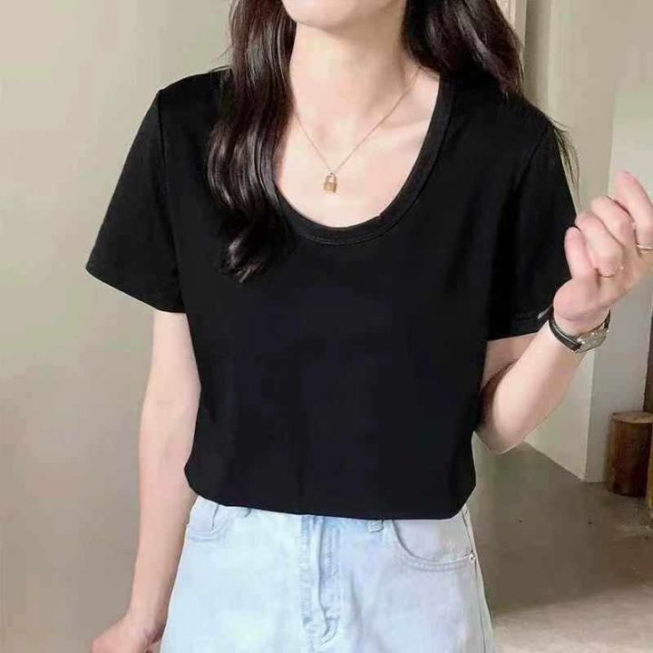 天猫在售款910件左右高品质夏季修身正肩U领T恤,单款两色,高弹力,码数S-XL,独立包装带吊牌