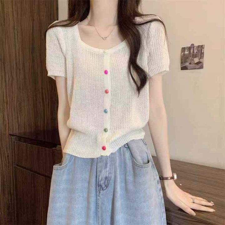 秋季新品韩系小香风针织短袖开衫,独立包装,均码面料...