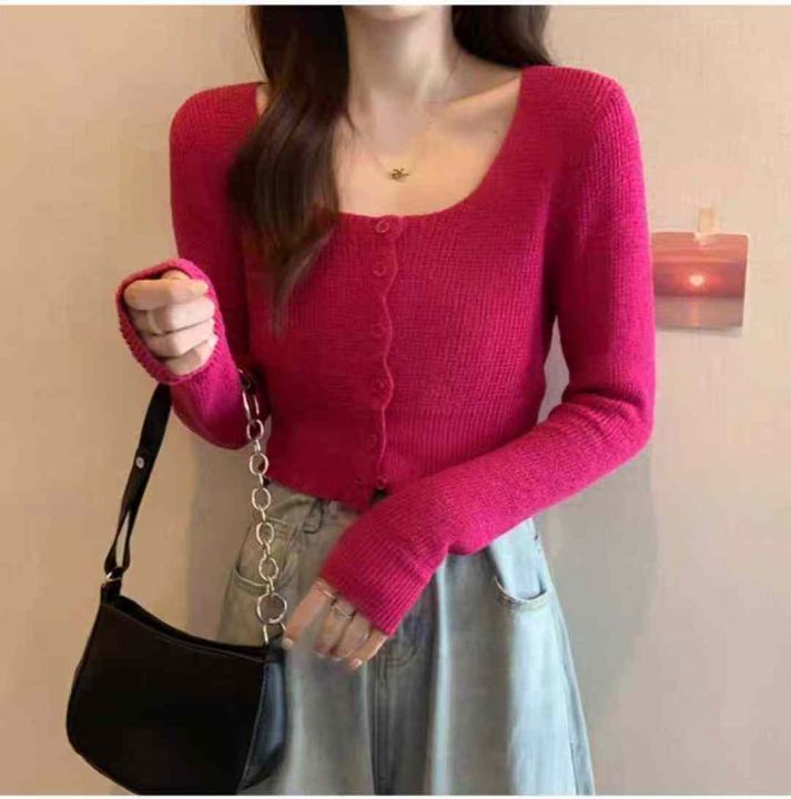 秋季新品韩系辣妹短款弹力修身显瘦针织长袖开衫,独立...