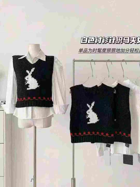 2025春季新款女毛织兔子提花针织马甲背心,品质很好,...