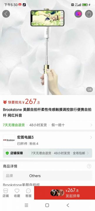 美国品牌高端手机自拍杆高端铝合金材质支持蓝牙传感...