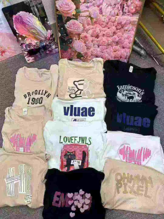 系列款杂图案短袖T恤女美式复古印花,有个别长袖,有几十件PoLo领的,独立包装,款式都是大同小异,货品干净,1到6码,500件左右,4.8清,分货加1