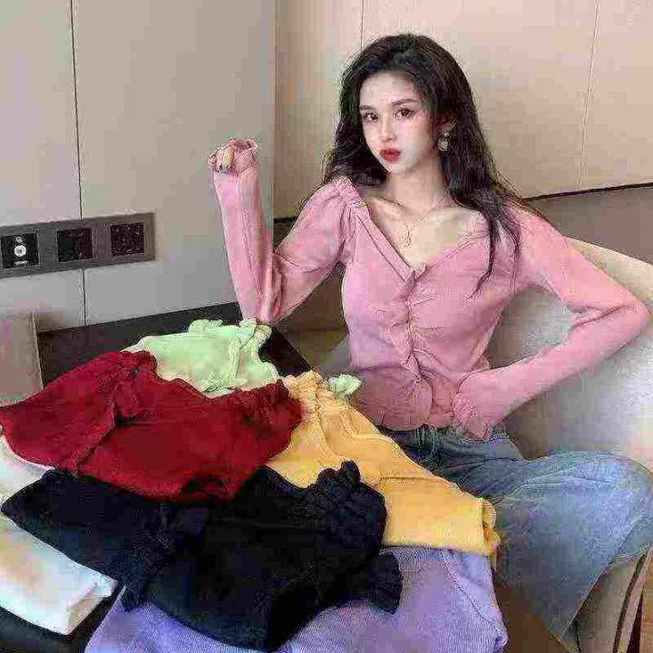 早秋流行穿搭v领毛衣针织长袖小衫上衣,独立包装,均码,750件,清7.5,分➕1