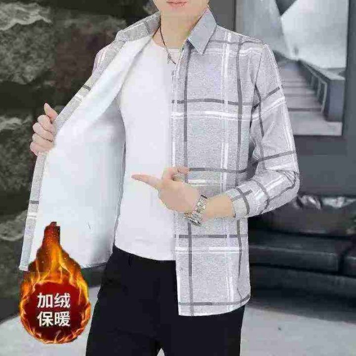 男士长袖衬衫秋冬季韩版潮流帅气加绒衬衣男上衣服,整...