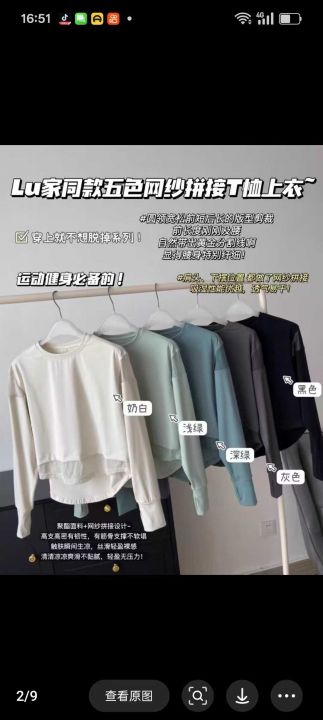 105件,露露运动瑜伽网纱拼接上衣。