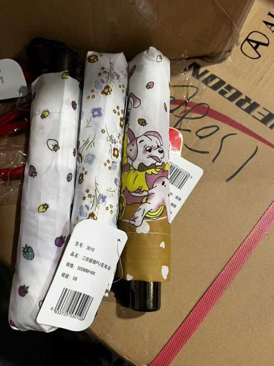 3500把,三折超细PU 花布伞,每件150支多色混装