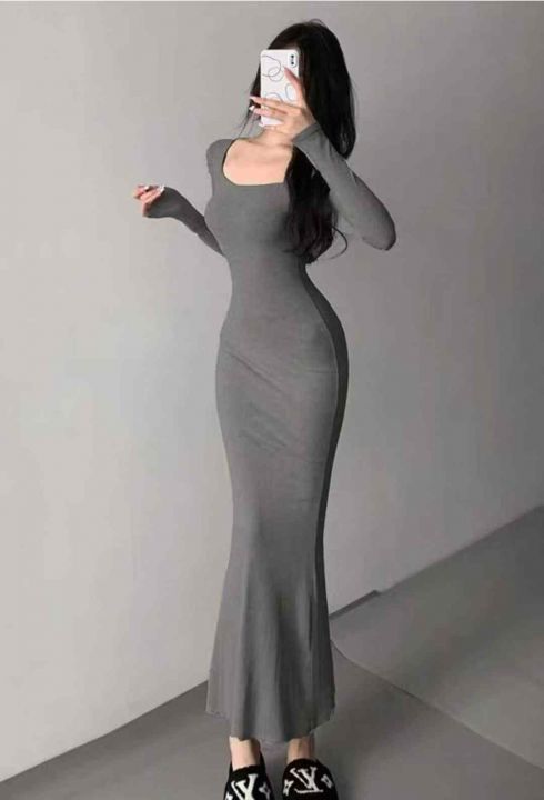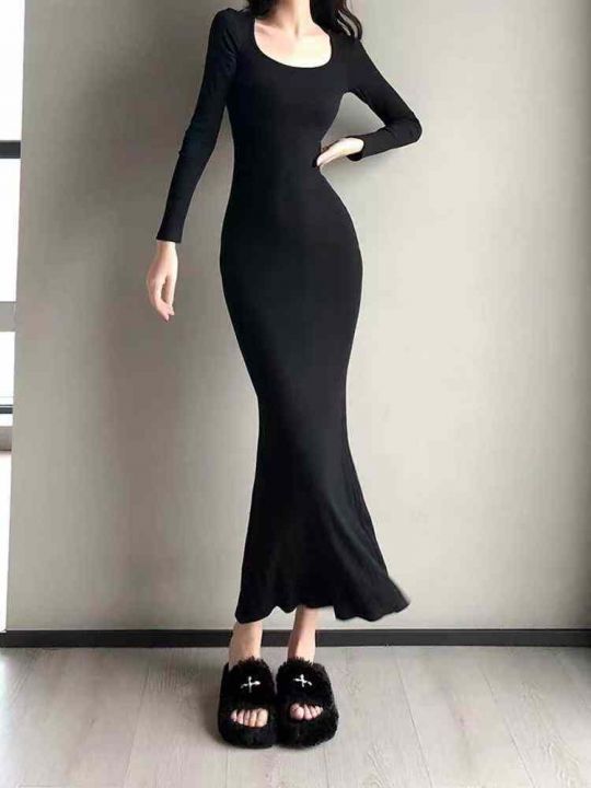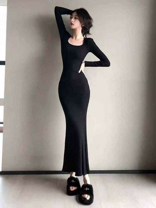 秋季新品辣妹纯欲性感弹力修身显瘦长袖连衣裙,独立包...