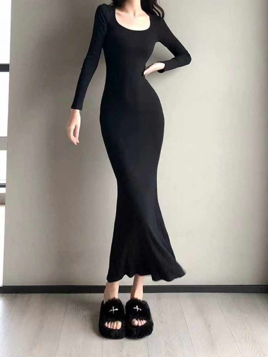 秋季新品辣妹纯欲性感弹力修身显瘦长袖连衣裙,独立包...