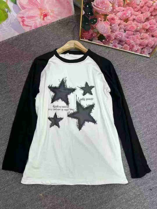 新款个性星星印花T恤女小清新秋季打底衫上衣,图片款图片色,S.L码,90件左右,4.9秒杀