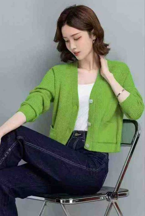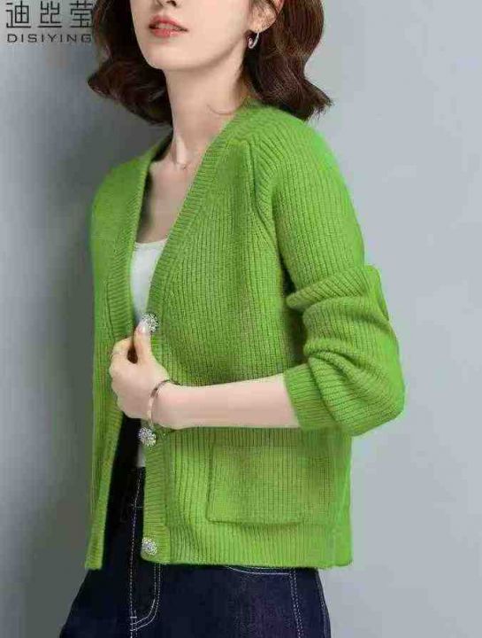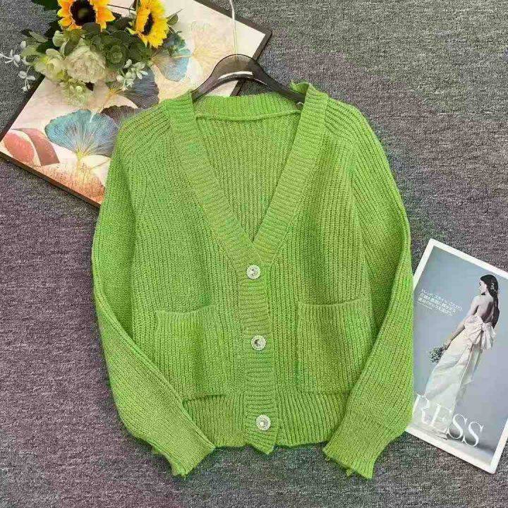 早秋新款V领宽松慵懒风针织毛衣开衫,独立包装,均码...