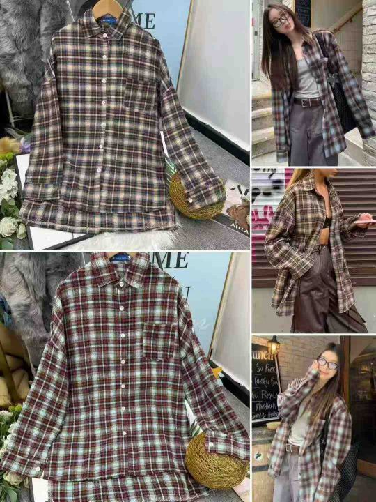 女士爆款韩版潮牌美式慵懒中长款长袖格子开衫衬衫,独立包装,图片三个款,数量696件,码数M-2XL码,分货加1,货号928#96