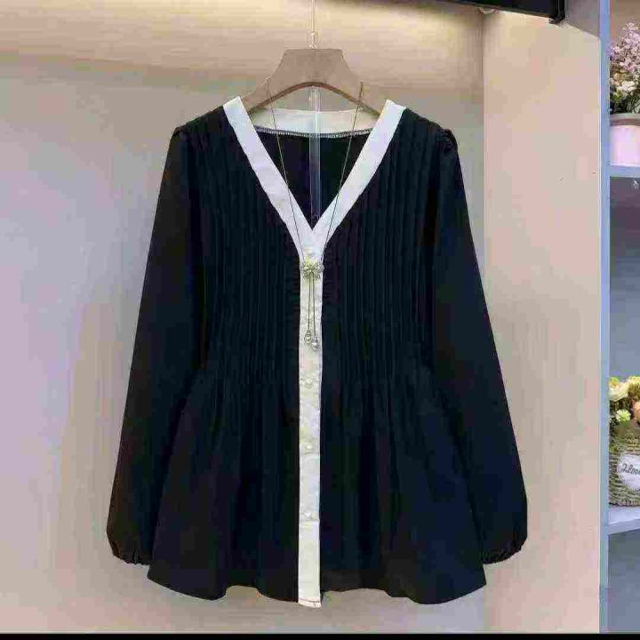 上新全清:8.8一件气质V领设计感遮肉宽松百搭长袖上衣...