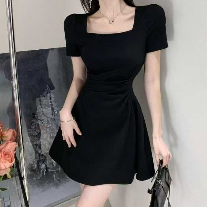 上新全清:7.9一件高级感赫本风方领收腰褶皱连衣裙,1030件左右,S-M为主,...