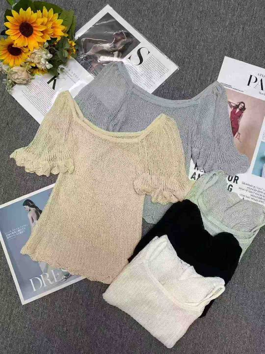 夏季新款女装冰丝设计款小众短袖针织毛衣,独立包装,均码面料柔软舒适,1700件,全清4.9元超低价秒杀!分货加一!