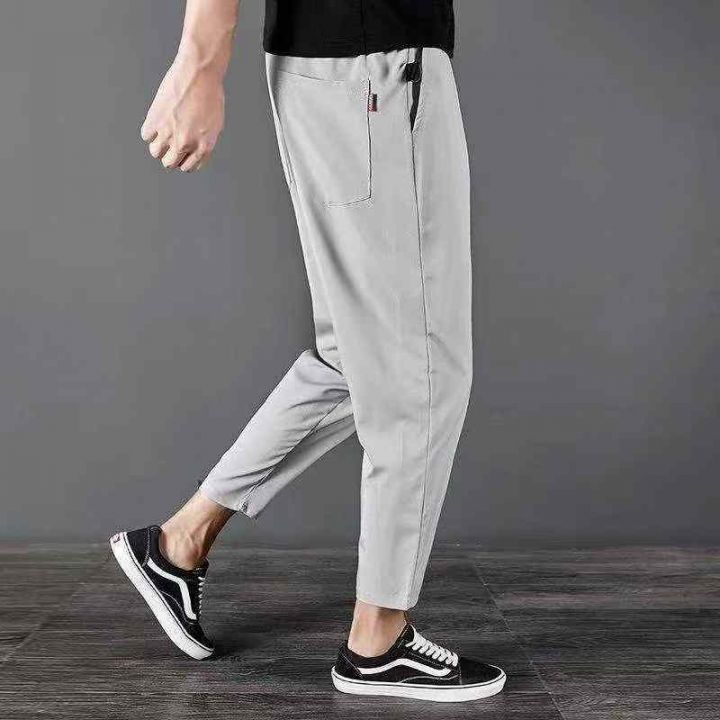 夏季男士裤子2025新款冰丝宽松运动九分薄款ins潮流休闲长裤,300件,深灰、浅灰、藏青、黑色四个色,码数M、L、XL、3XL、4XL、5XL