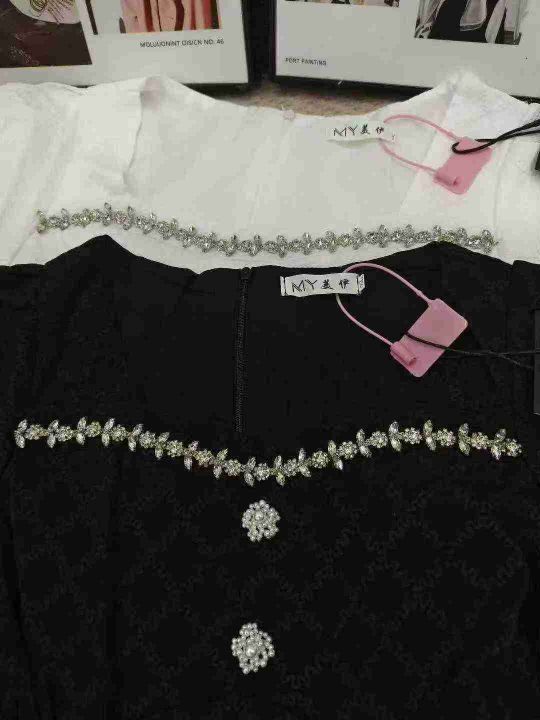 法式菱格镶钻方领高腰修身高级时尚连衣裙 数量112件 码数M--4XL 整款两个色 独立包装带吊牌 货品整洁质佳