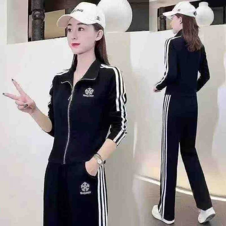 三件套韩版立领运动服套装女卫衣春装新款洋气显高阔腿卫裤子时尚