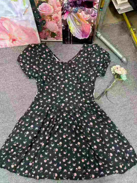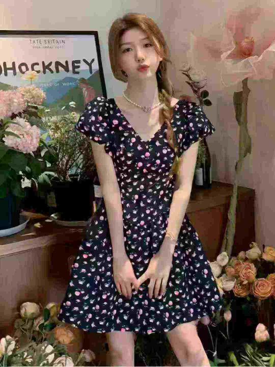 法式复古桔梗碎花连衣裙2025夏季新款蝴蝶结收腰显瘦a字裙,单款单色,2.3.4.5码,独立包装,货品干净,4630件,7.9清,分货加1
