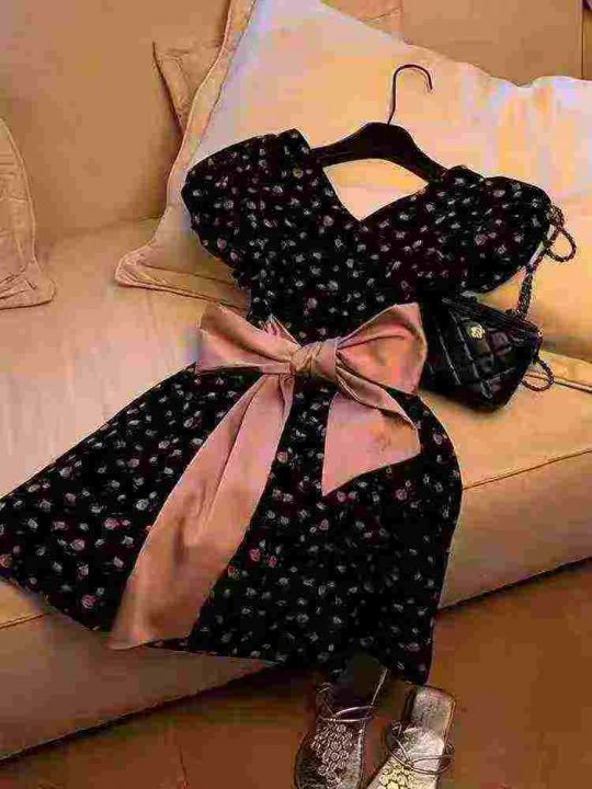法式复古桔梗碎花连衣裙2025夏季新款蝴蝶结收腰显瘦a字裙,单款单色,2.3.4.5码,独立包装,货品干净,4630件,7.9清,分货加1