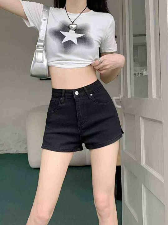 夏季新款高弹力性感辣妹纯欲风牛仔短裤,独立包装带吊...