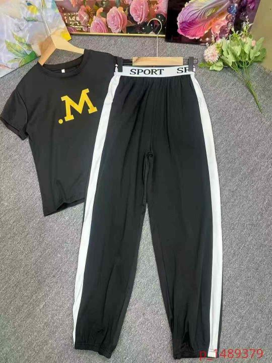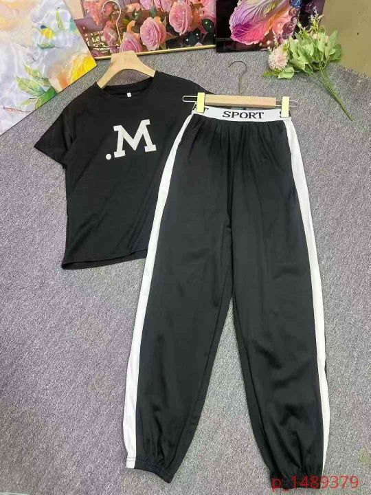 高腰运动套装女夏新款欧货时尚短袖宽松减龄休闲两件套,1到6码,700套左右,独立包装,货品干净,7.8清,分货加1 _@_@