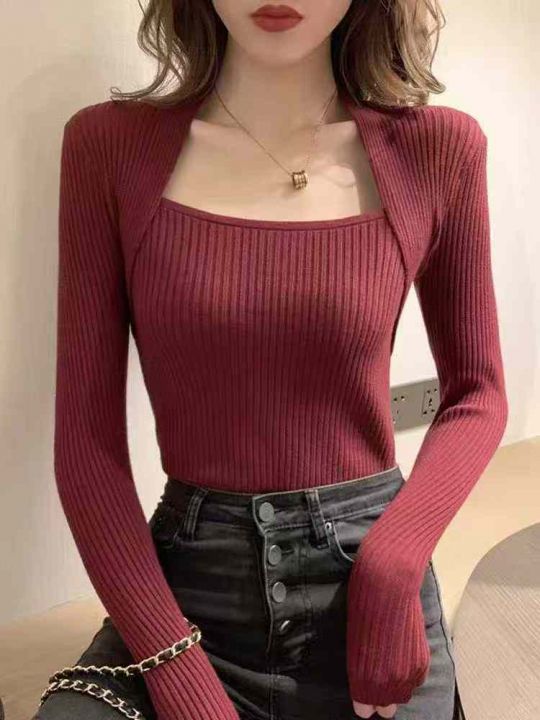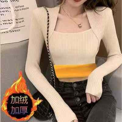 冬季新款加绒加厚方领弹力修身显瘦洋气套头毛衣,独立...