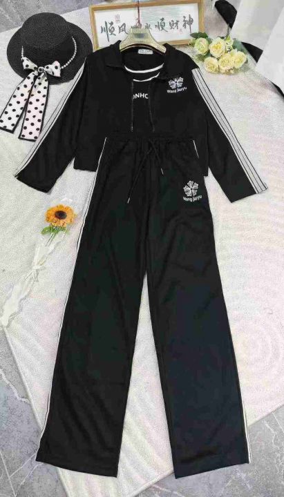 三件套韩版立领运动服套装女卫衣春装新款洋气显高阔腿卫裤子时尚
