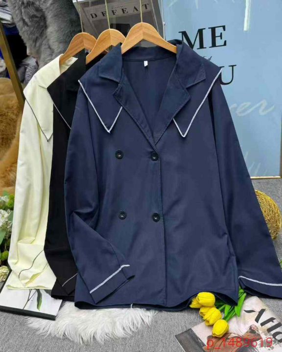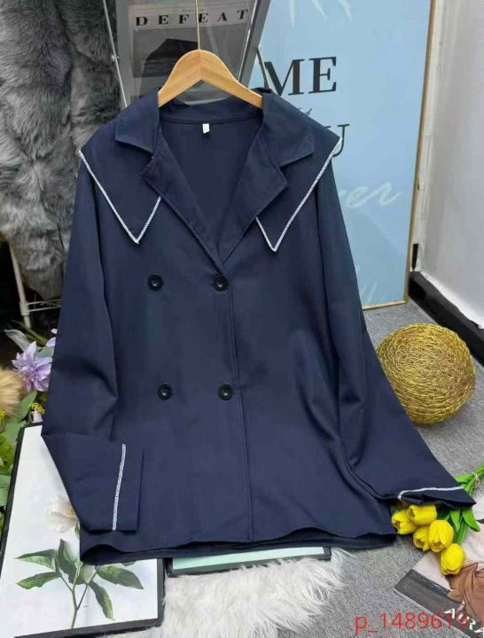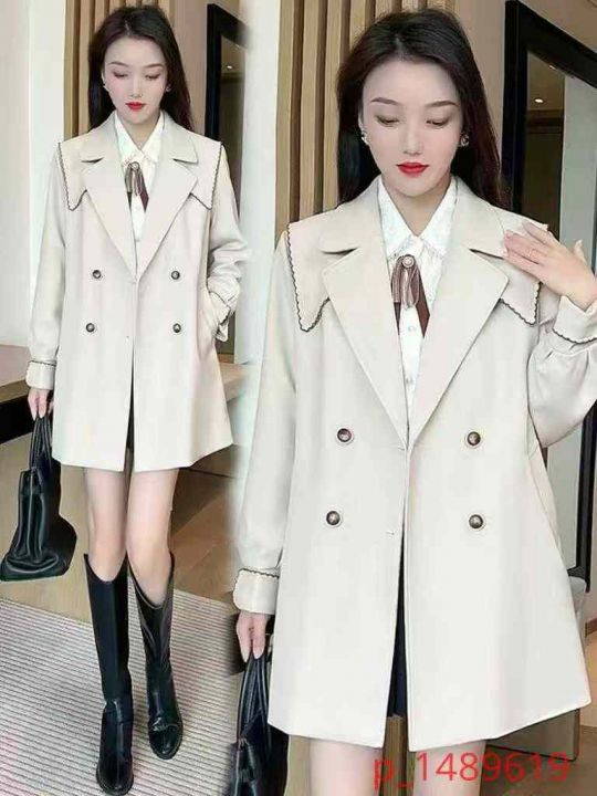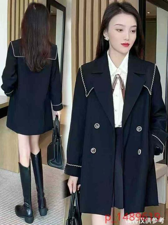全清价7.9元捡漏102件减龄海军领双排扣新款时尚中长款...