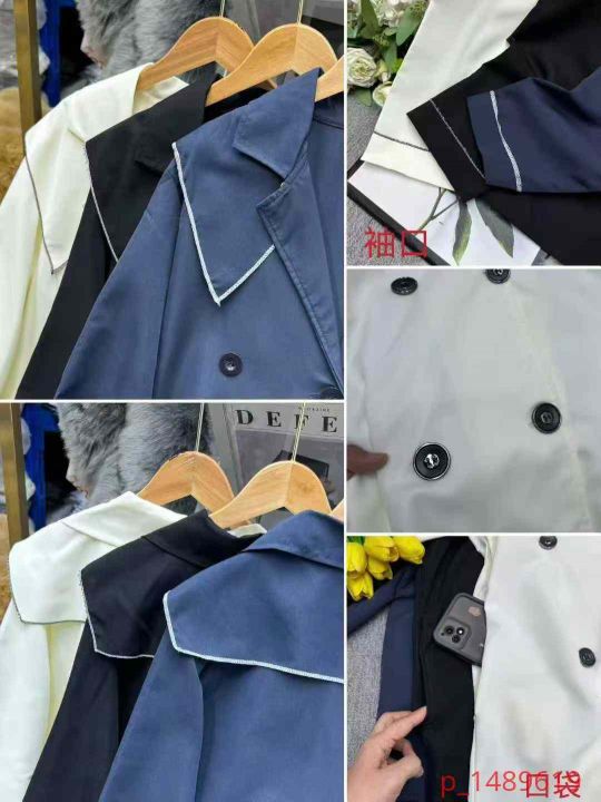 捡漏102件减龄海军领双排扣新款时尚中长款薄风衣外套,独立包装,码数1-3,货号929#98 _@_@
