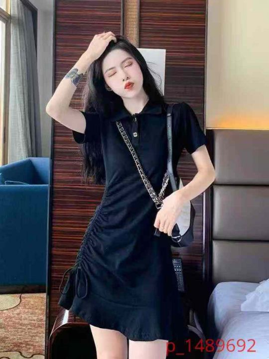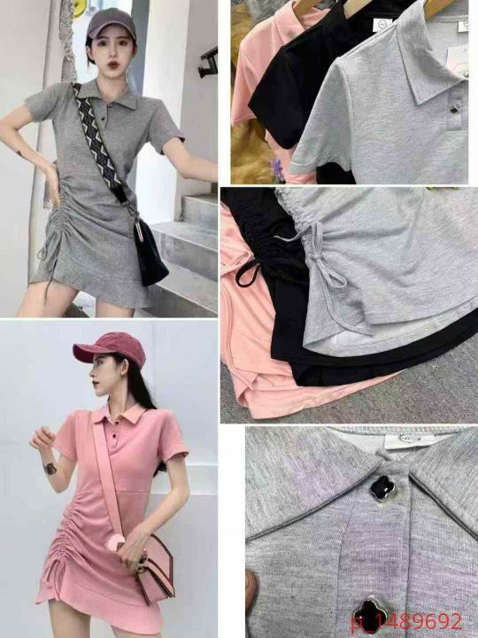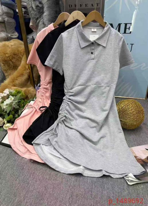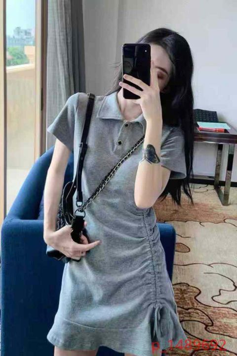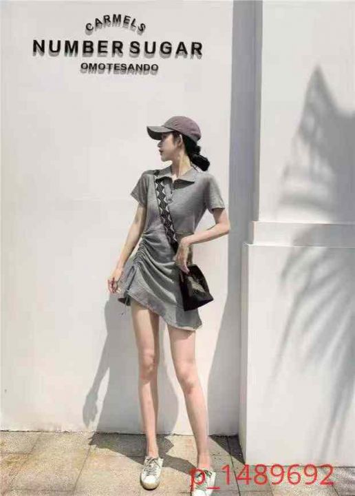 捡漏56条夏季新款法式辣妹翻领荷叶边系带不规则褶皱polo领连衣裙子女a字裙潮,独立包装,大货灰色为主,码数1-4,货号929#100 _@_@