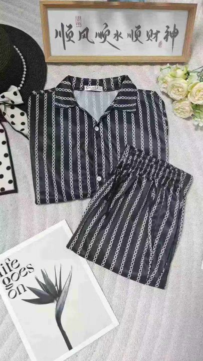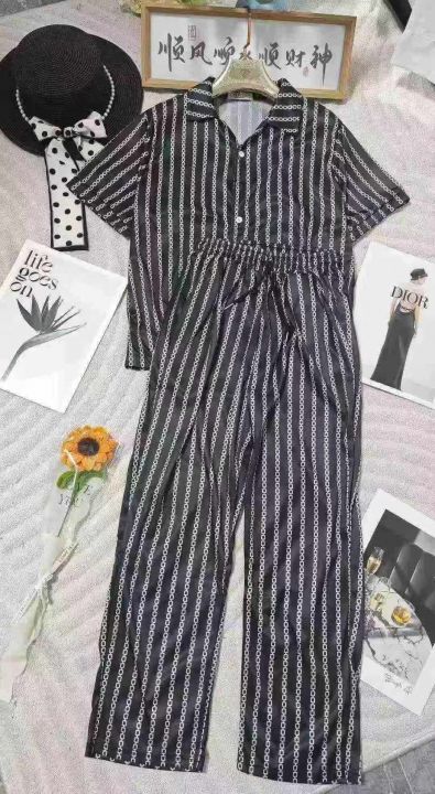 夏季潮流新款男士可外穿条纹睡衣家居服时尚套装