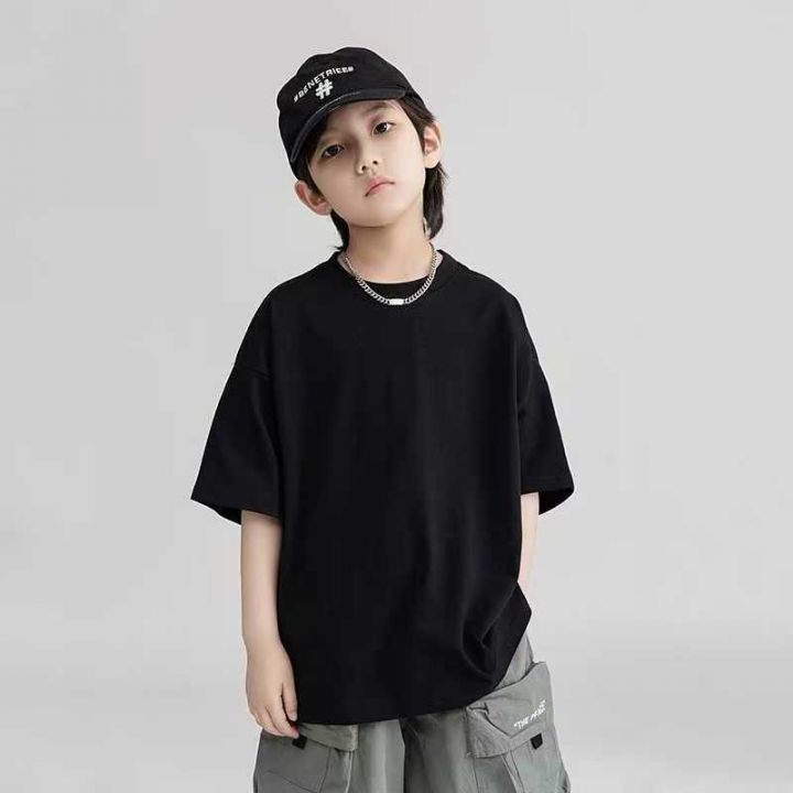 7576件\'夏季新款中大童韩版纯色凉感半袖体恤儿童上衣,20件一包装,黑白两...