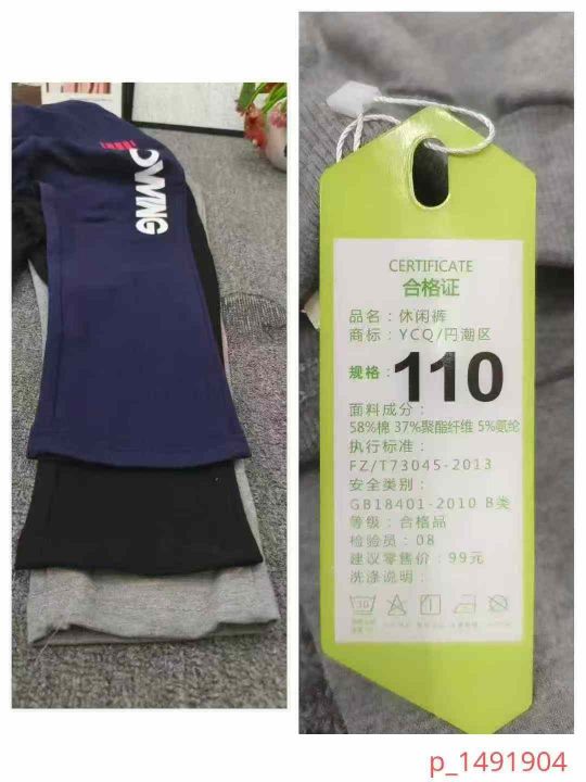 统一品牌中大童平角长裤,数量1000件左右,尺码110--160,整款三个色,面料图9,独立包装带吊牌,货品干净整洁