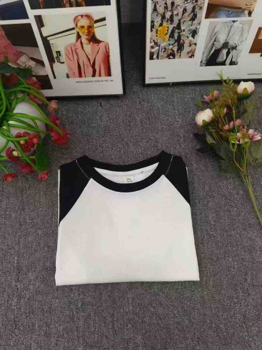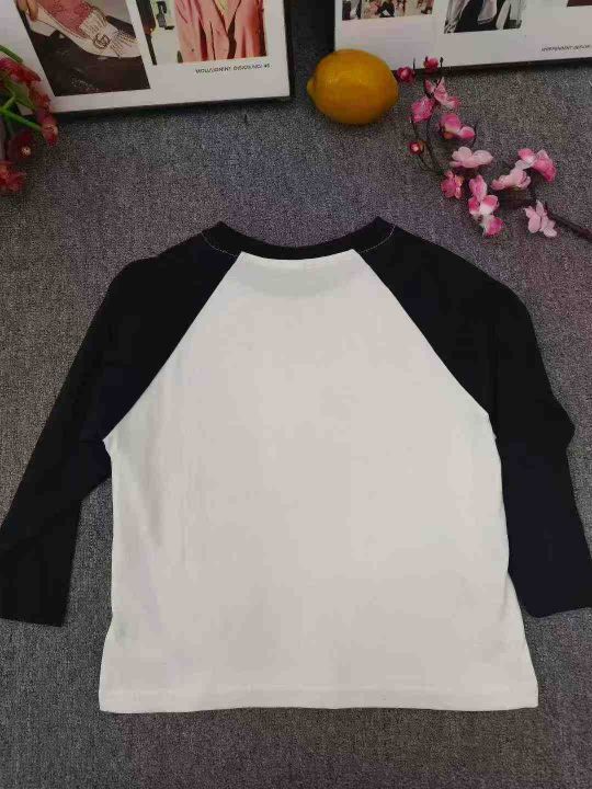 纯棉童装拼色长袖 数量500件左右 尺码110--160 后领包边 十件一包装 货品干净整齐