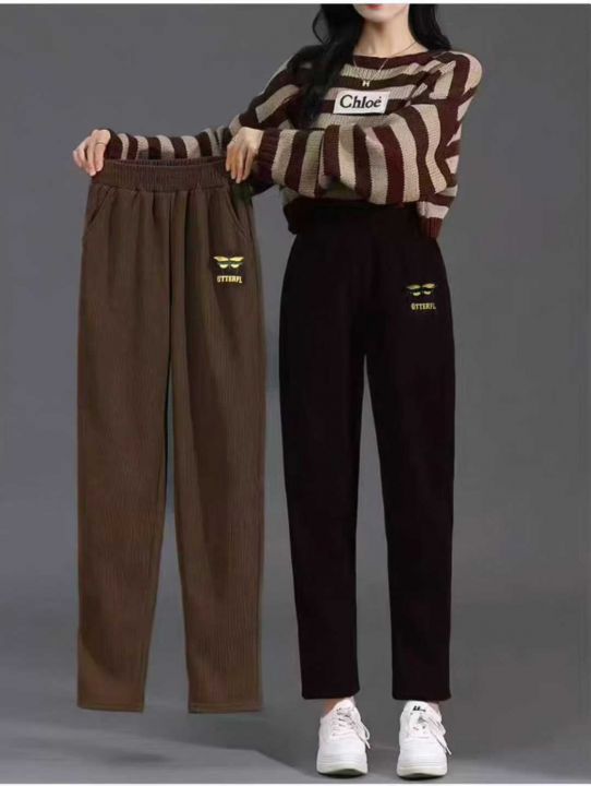 全清价8.9元女士初秋高腰休闲松紧修身重工刺绣直筒裤...