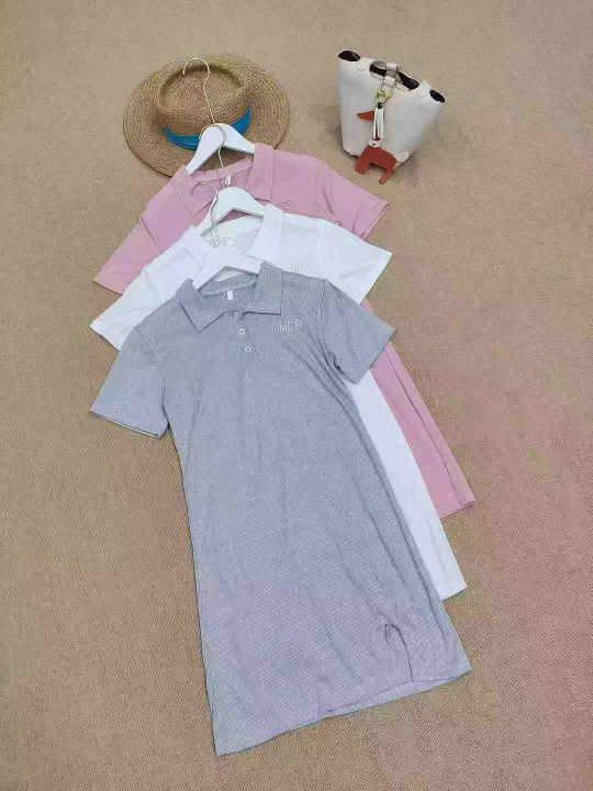 [月亮]:气质Polo领性感包臀开叉休闲连衣裙