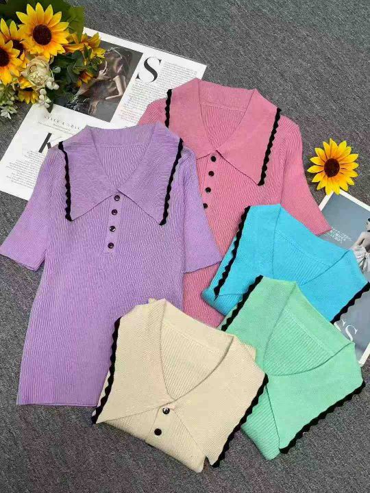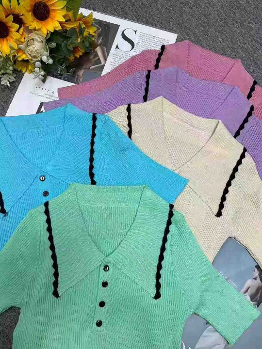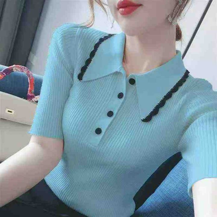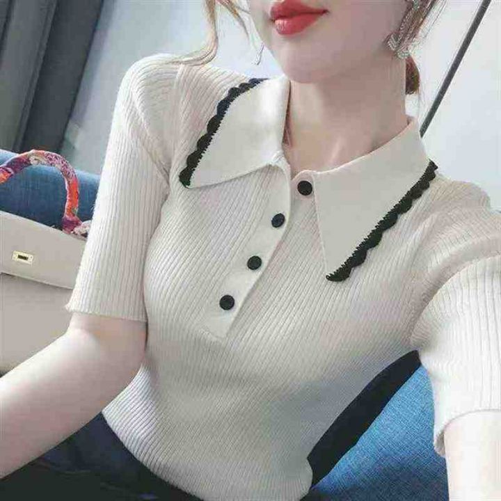 夏季新款小香风冰丝弹力修身显瘦气质撞色polo领针织短袖,独立包装,均码面料柔软舒适弹力大,300件,全清6.9元超低价秒杀!分货加一!