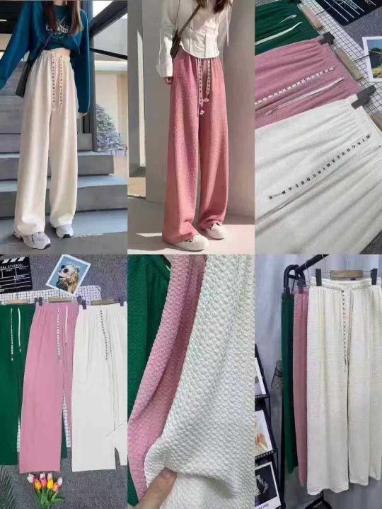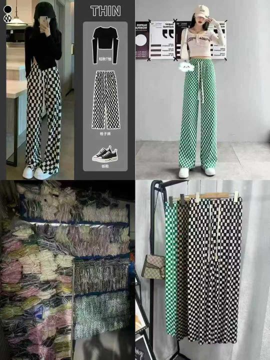 3360条泡芙裤女冰丝薄款宽松阔腿裤垂感棋盘格裤子,3个整款多个颜色,独立包装,码数S一XXL,全清7.8分货加1